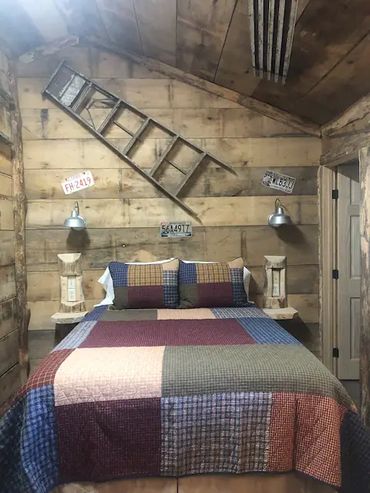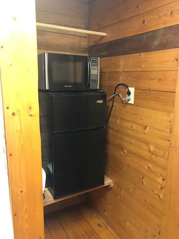 Cozy cabin for up to 2 people Pets allowed with a fee Queen size bed small refrigerator microwave Gas grill on the porch Picnic table with benches Two rocking chairs Tv with Wi-Fi No Wi-Fi if storming One bathroom with shower.
