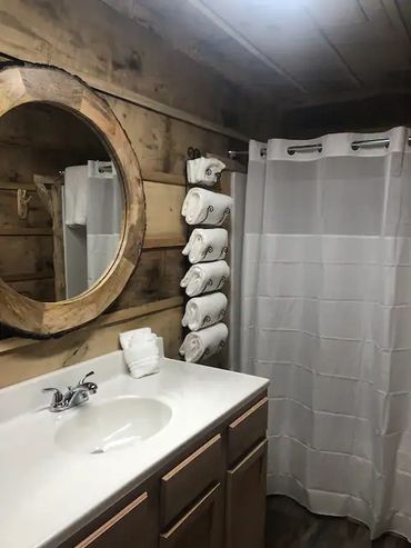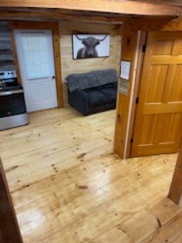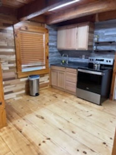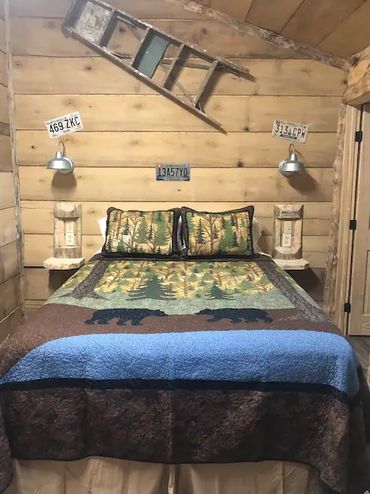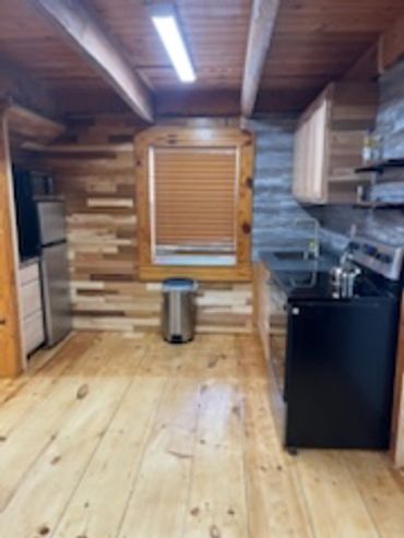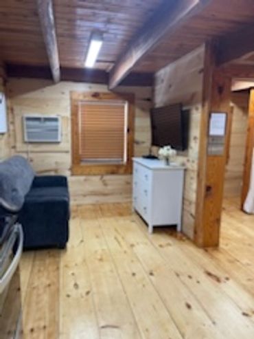 Great cabin for 1 to 2 guest, one bedroom with a queen and closet. Kitchen with stainless steel appliances, living room with loveseat and tv, one bathroom,